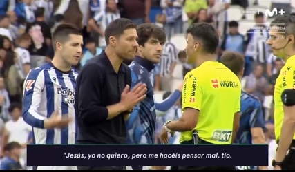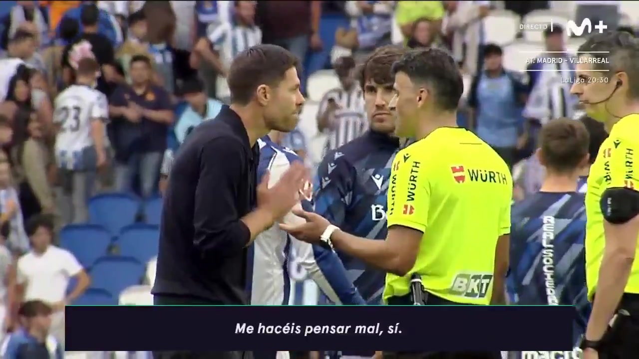 赛事 第32分钟,皇家社会反击机会,苏超在线直播高清视频无插件赫伊森违例 ,主裁判 曼萨诺果断出示驱逐 。转播方拍到了皇马主帅阿隆索与裁判 曼萨诺沟通的内容。