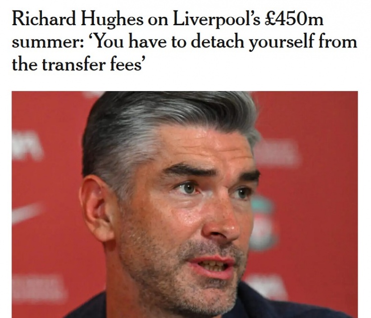 9月19日讯 利物浦体育总监理查德-休斯本周四与芬威CEO爱德华兹一起出席IMG x RedBird峰会时接受The Athletic采访,谈到了俱乐部的转会策略。