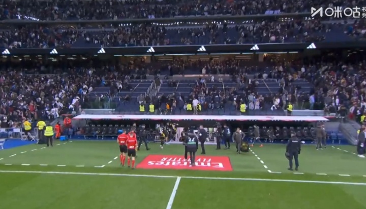 上半场最后阶段皇马在后场倒脚,伯纳乌主场作战 球迷嘘声四起
