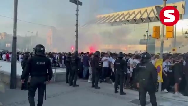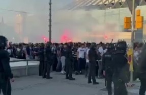 巴萨巴黎大战一触即发!大批巴黎球迷在运动活动 场 前聚集并呼喊口号